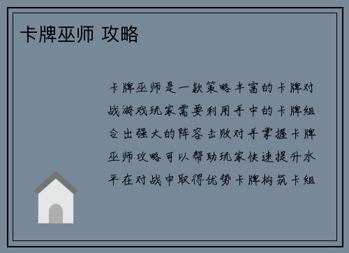 卡牌巫师是一款策略丰富的卡牌对战游戏,玩家需要利用手中的卡牌组合出强大的阵容,击败对手。掌握卡牌巫师攻略可以帮助玩家快速提升水平,在对战中取得优势。